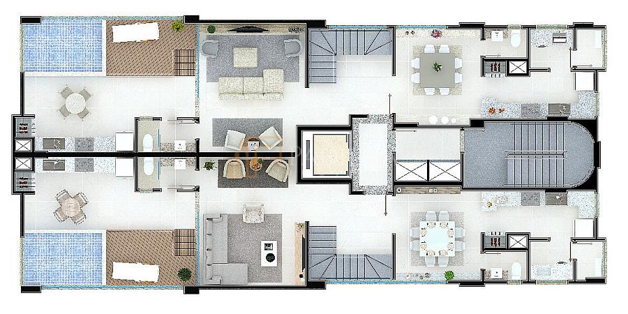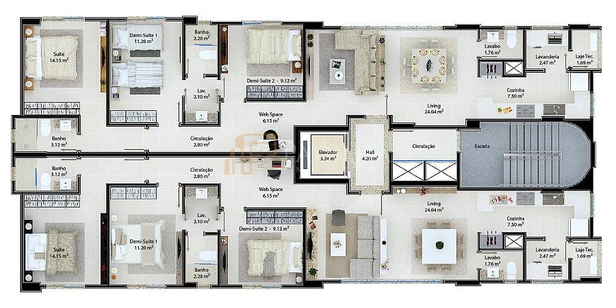 • 1 apto diferenciado com 4 suítes