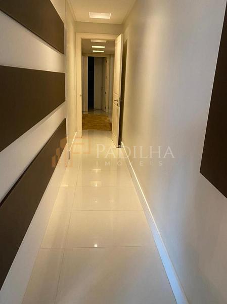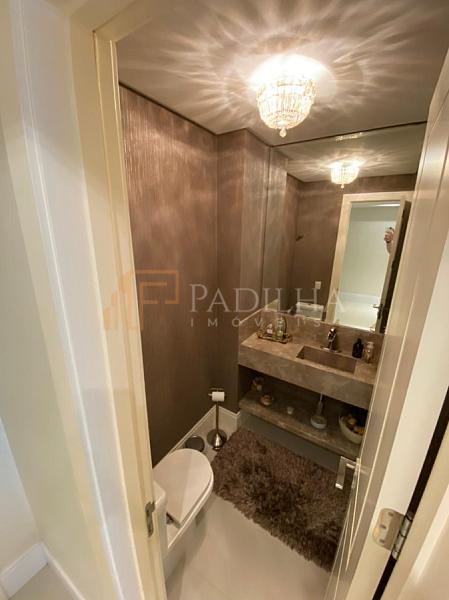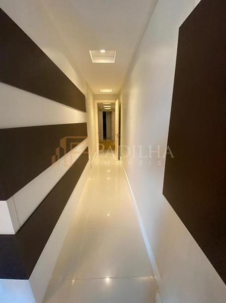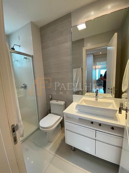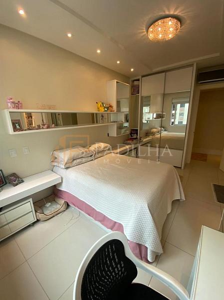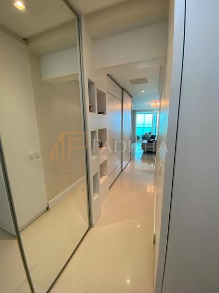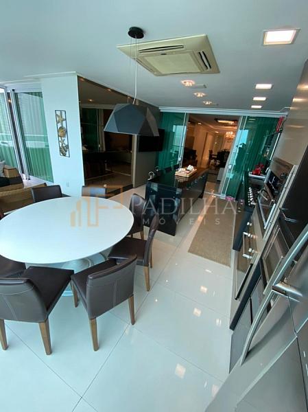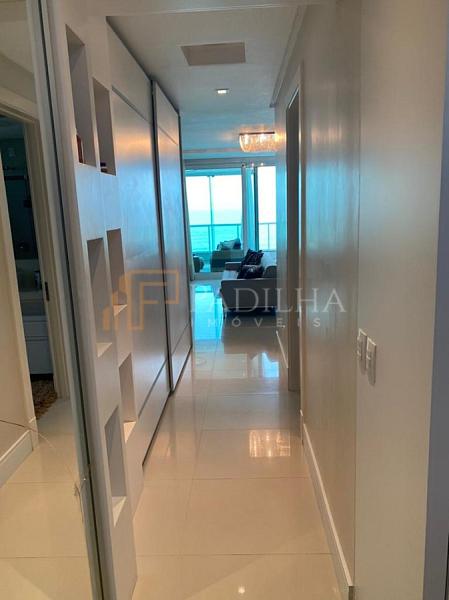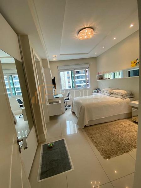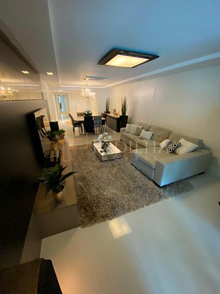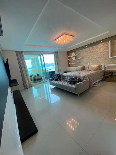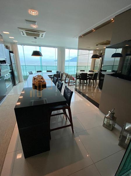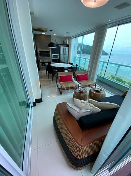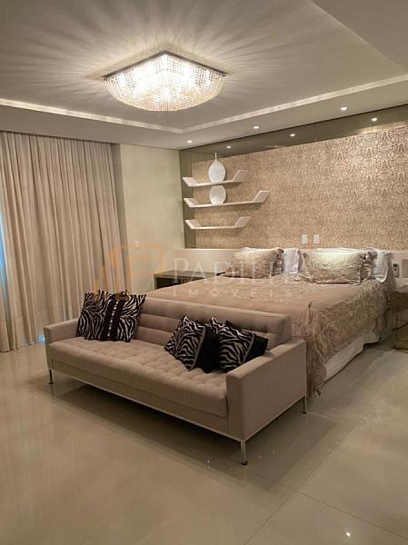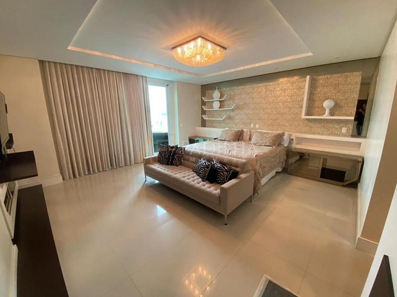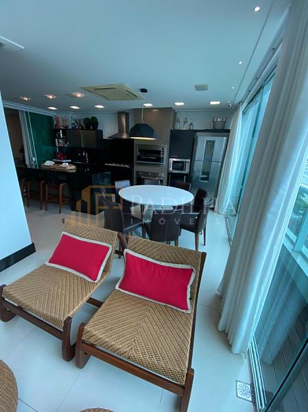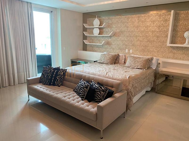 Mobiliado, decorado, equipado  e climatizado,  315,11m² de área privativa, 04 suítes sendo uma master com closet e banheira de hidromassagem, sala de TV, sala de estar e jantar, estar intimo, espaço gourmet completo, cozinha, área de serviço, lavabo, sacada e terraço com Ufuror e  com uma vista cinematografica para o ma,  05 vagas de garagem.